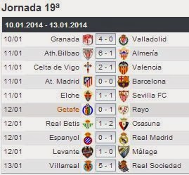 | Cuotas de Apuestas de la jornada 19 del pasado viernes 10 de enero de 2014 |