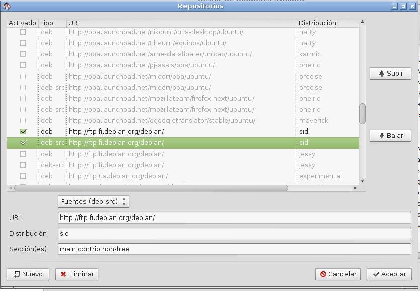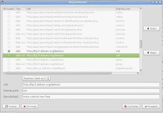 Lo dicho anteriormente, nos vale, para hacer pequeños ejemplos, pero para programar realmente, necesitaremos un IDE que nos permita programar con mayor facilidad. Os explico como instalar Netbeans3.1) Desmarcamos los repositorios de whezzy y marcamos los de sid en synaptic.