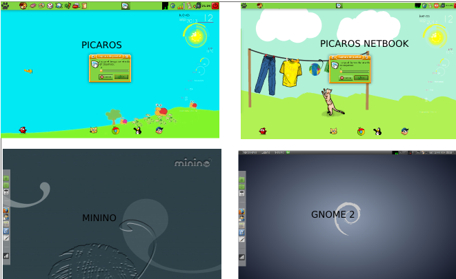 Minino PicarOS2013 tiene 2 escritorios, el infantil para los más pequeños, y luego el adulto, más serio que se cambia en el Menú -> Utilidades de MInino -> Estilo de escritorio. Tendrás con el mismo usuario, distintas interfaces según necesidades.